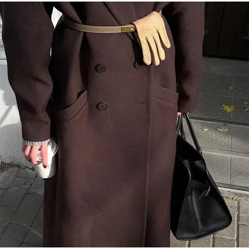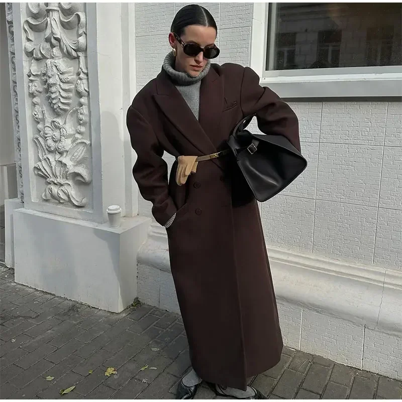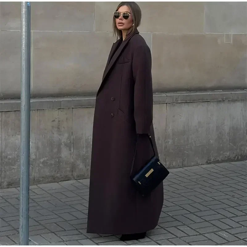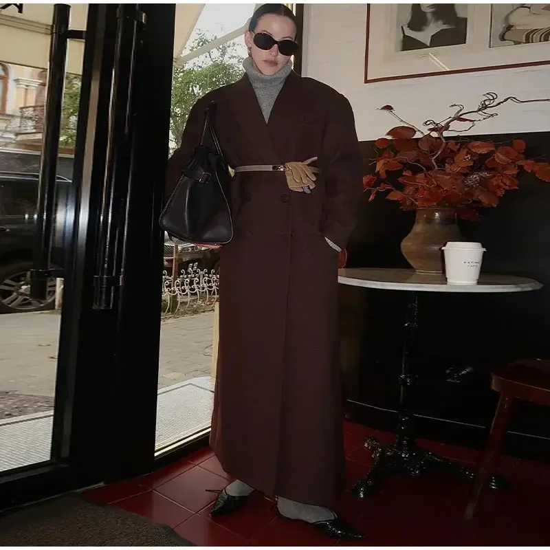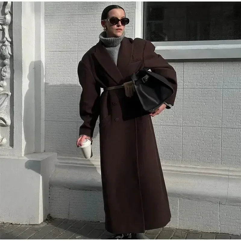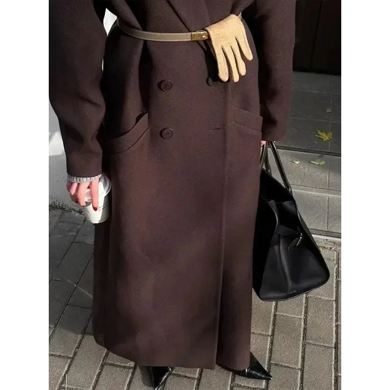 2024 Elegant Woolen Double-breasted Lapel Woolen Overcoat with Pockets Long Sleeve Coats Casual Autumn New Lady High Streetwear