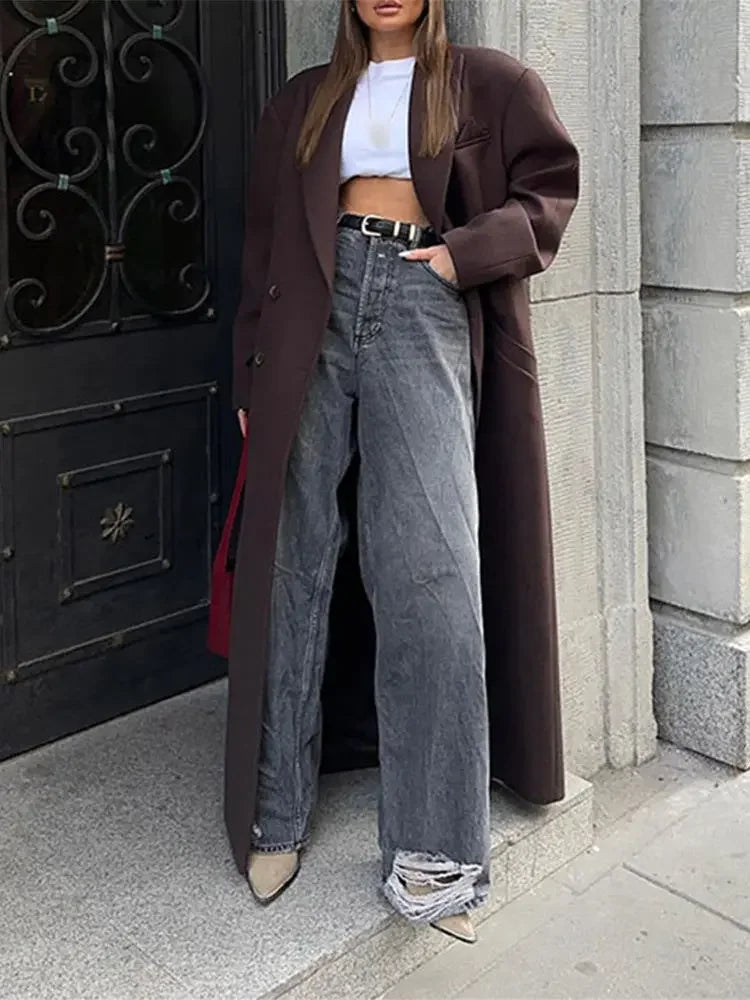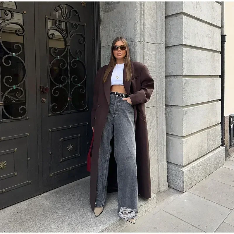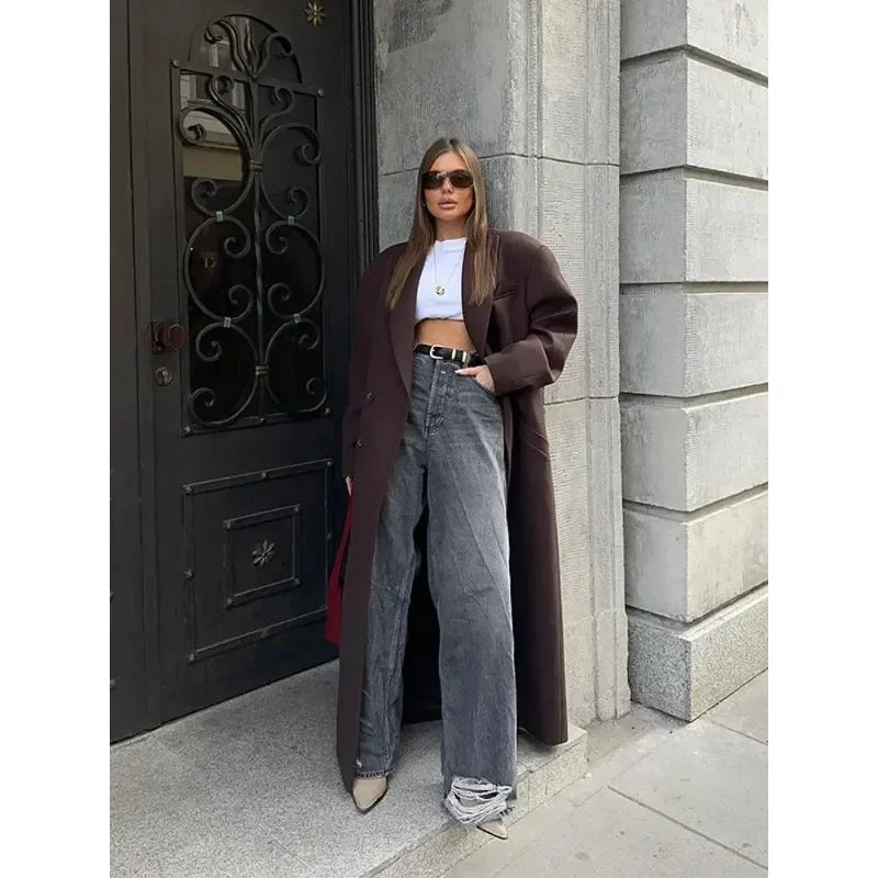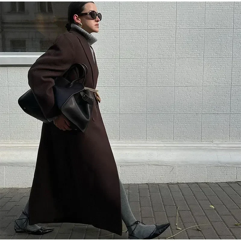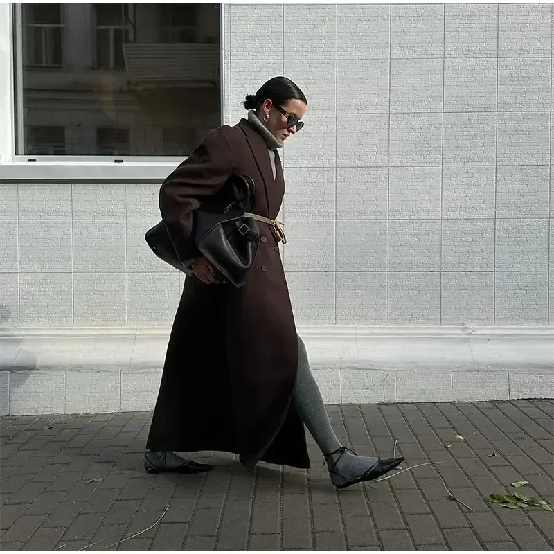 2024 Elegant Woolen Double-breasted Lapel Woolen Overcoat with Pockets Long Sleeve Coats Casual Autumn New Lady High Streetwear