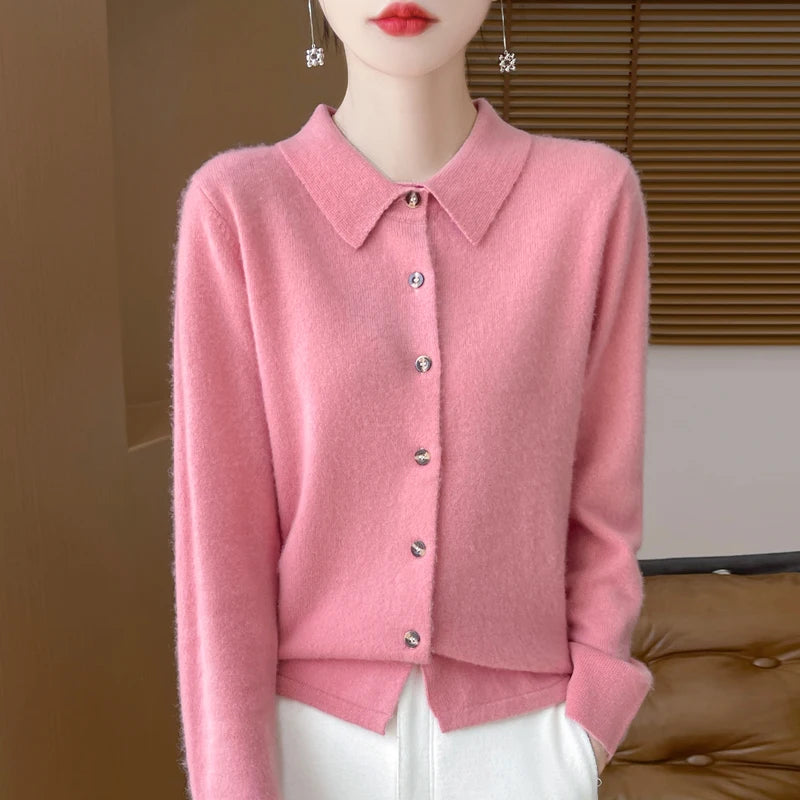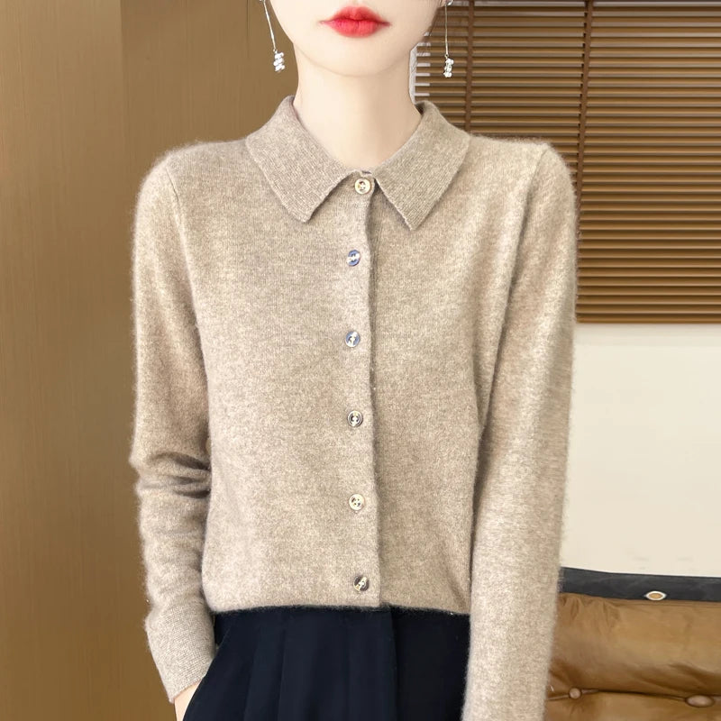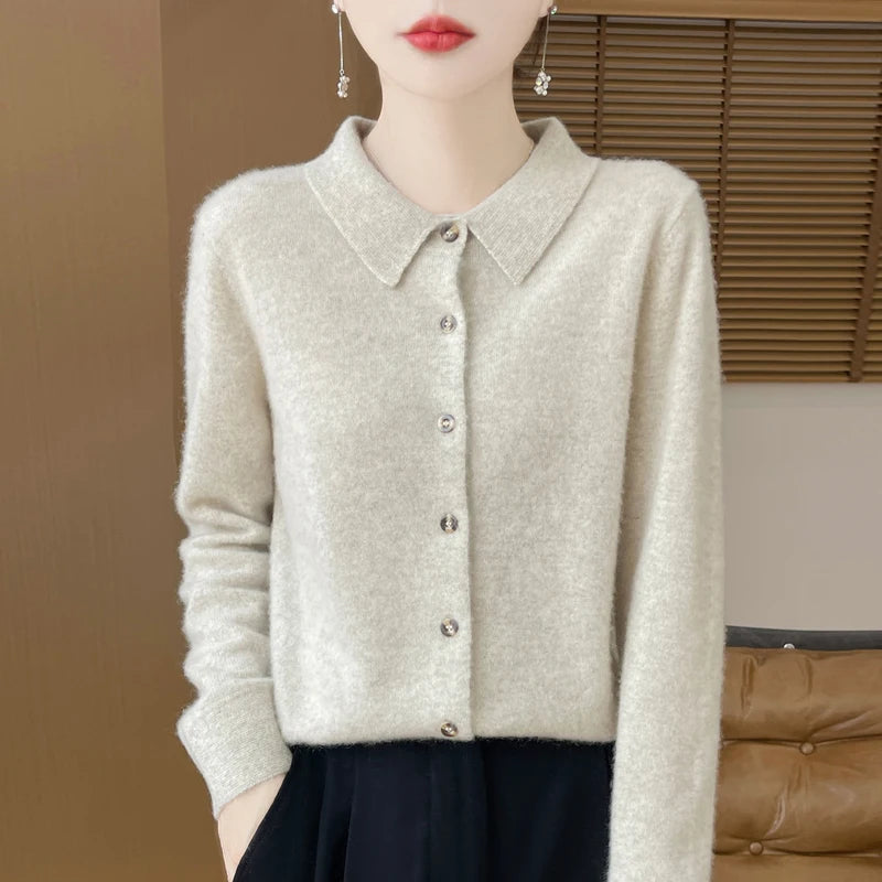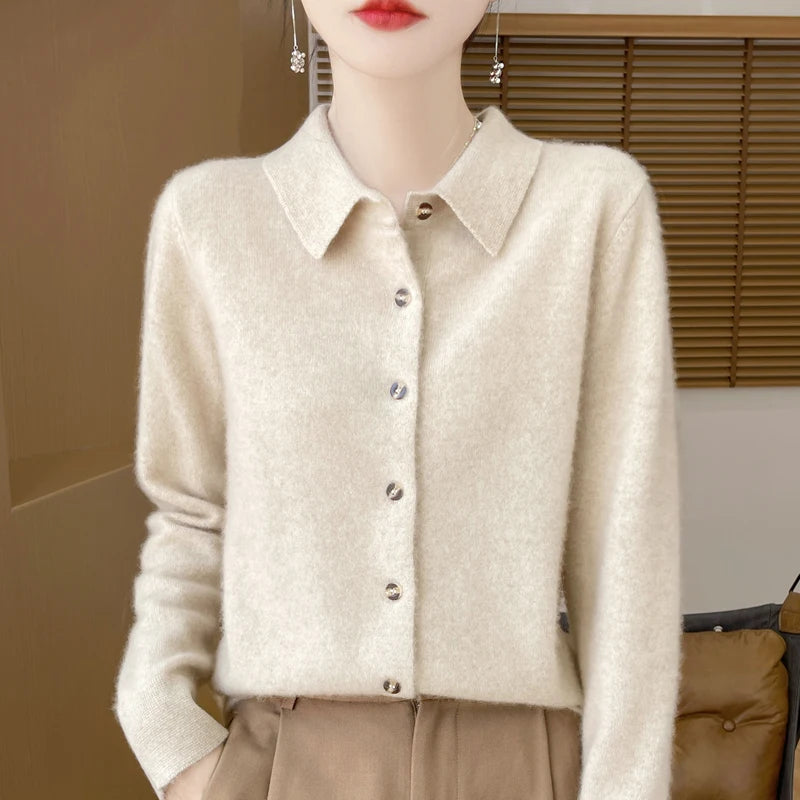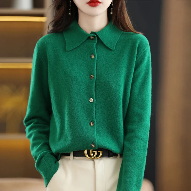 2024 Women's Sweater 100% Merino Wool POLO Collar Cardigan Knitted Warm Coat Autumn/Winter Loose Warm Soft Cashmere Sweater DMR