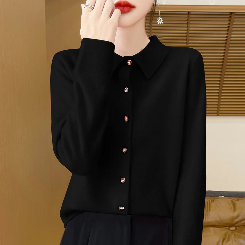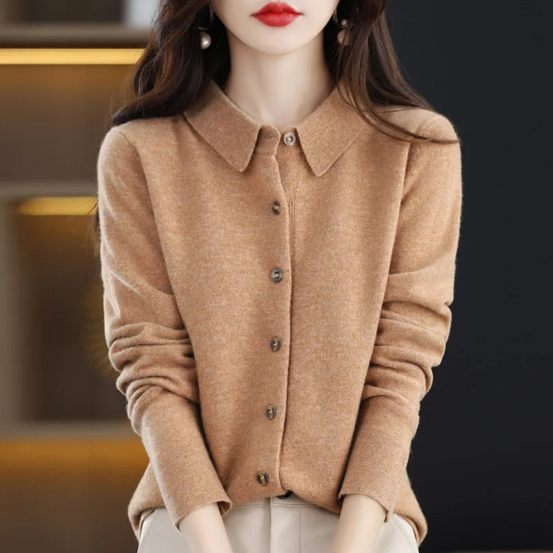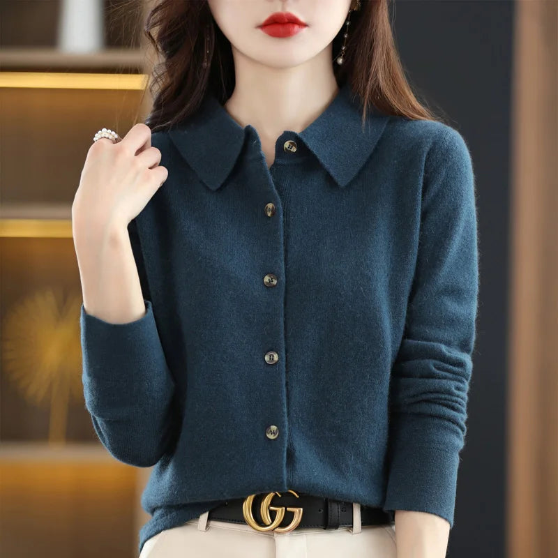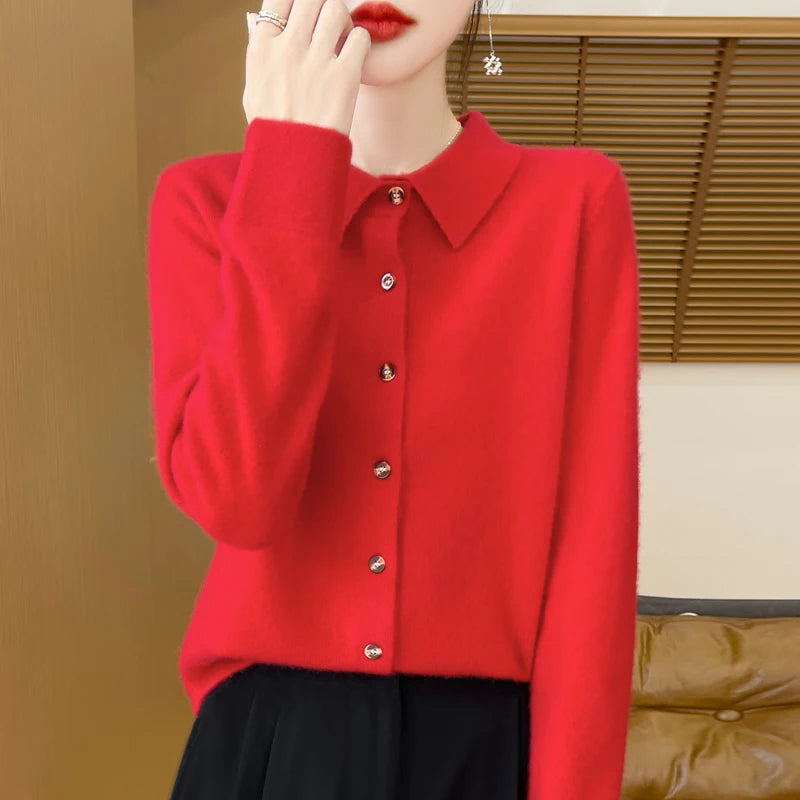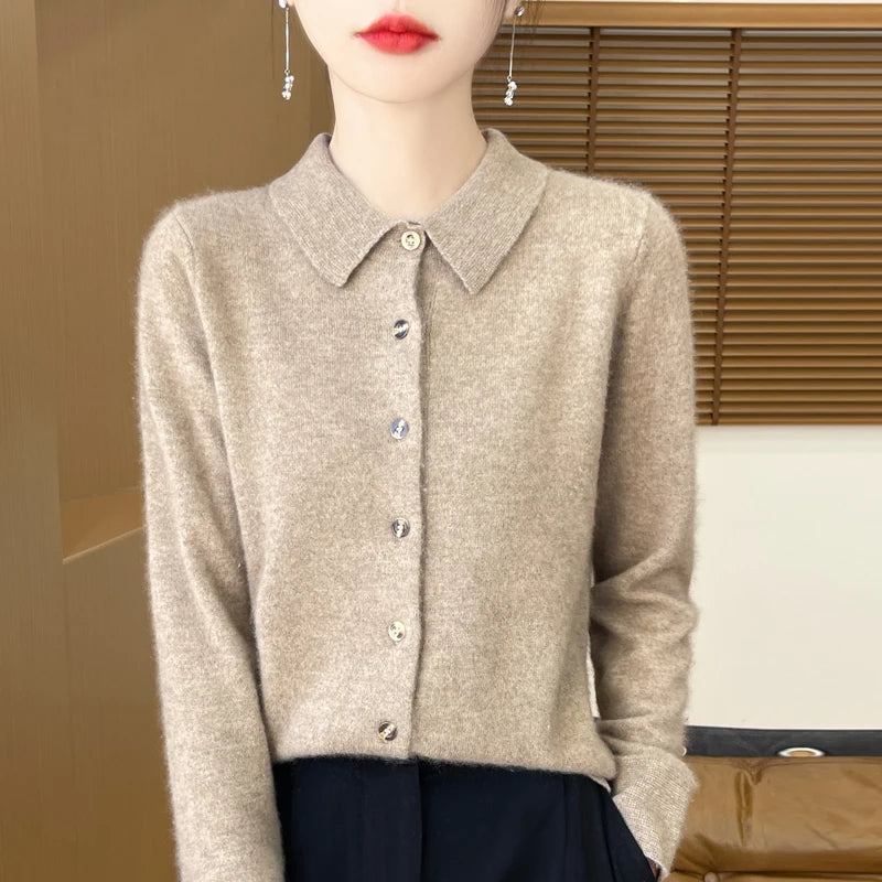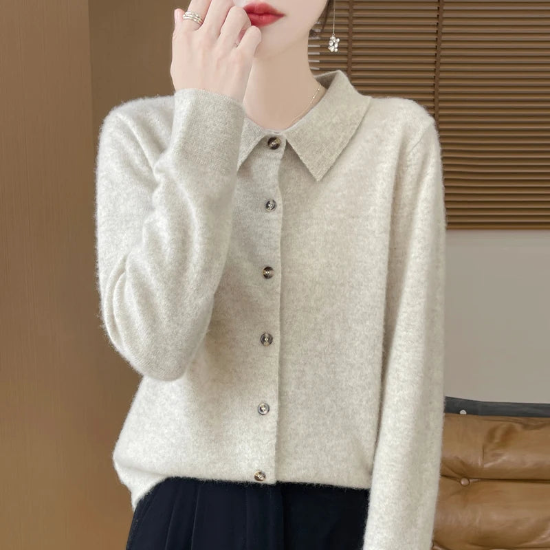 2024 Women's Sweater 100% Merino Wool POLO Collar Cardigan Knitted Warm Coat Autumn/Winter Loose Warm Soft Cashmere Sweater DMR