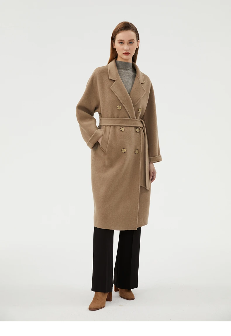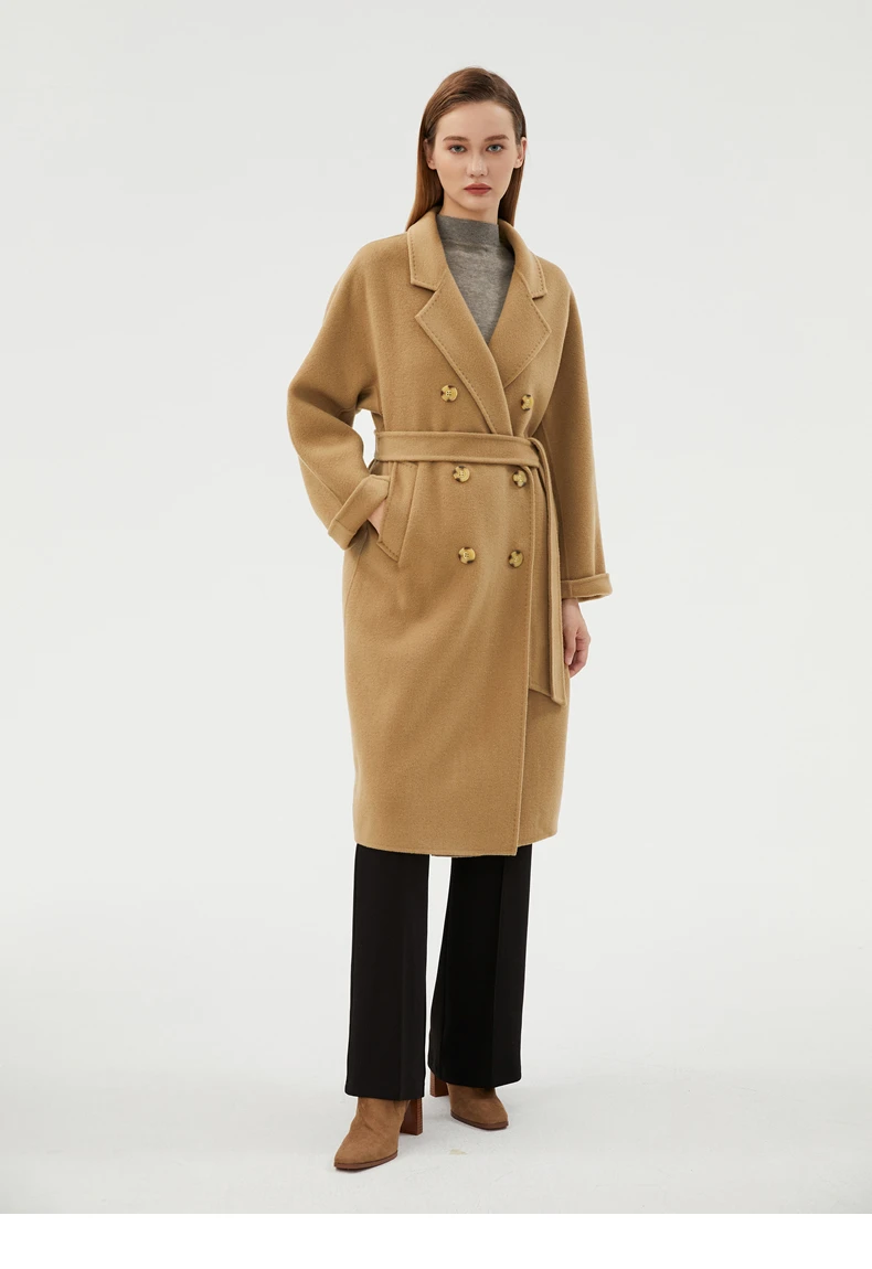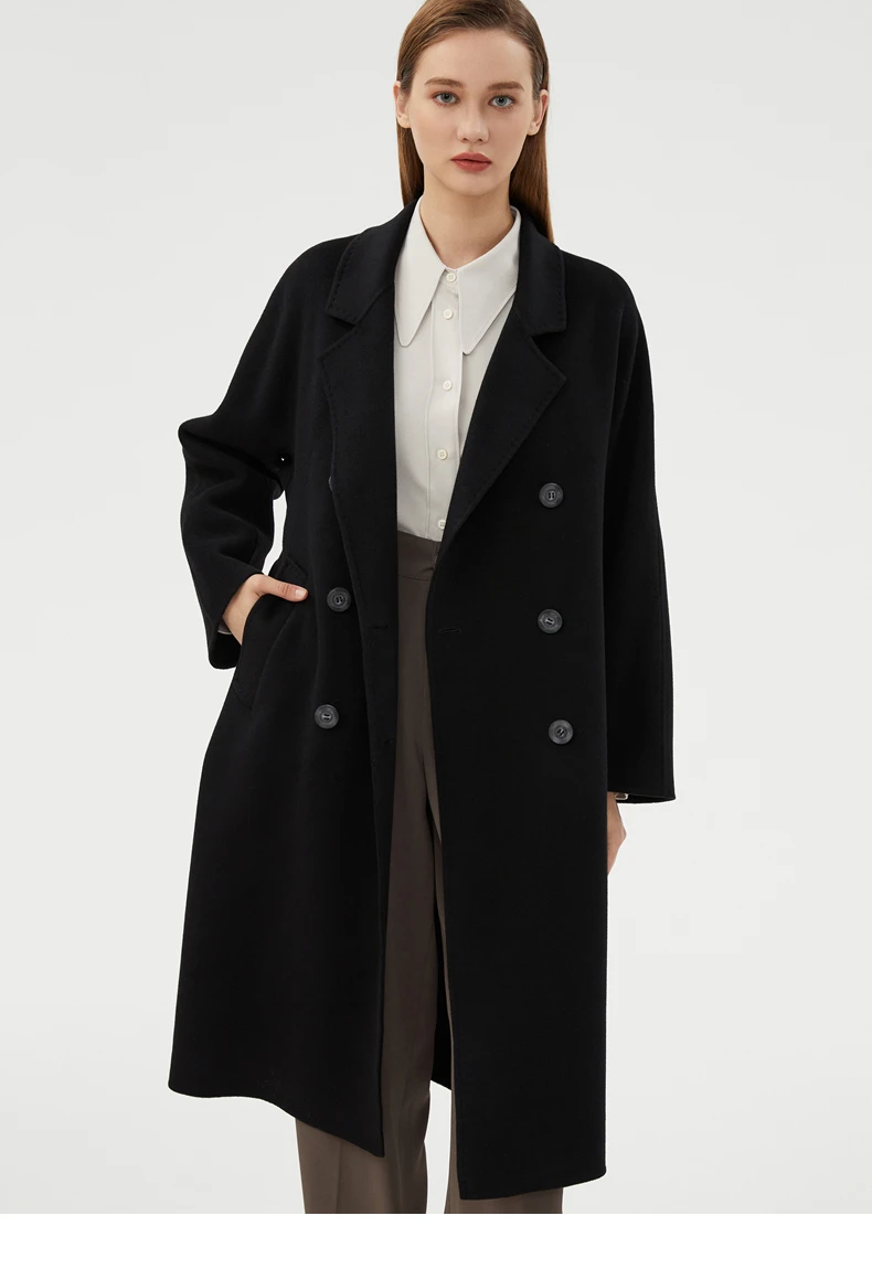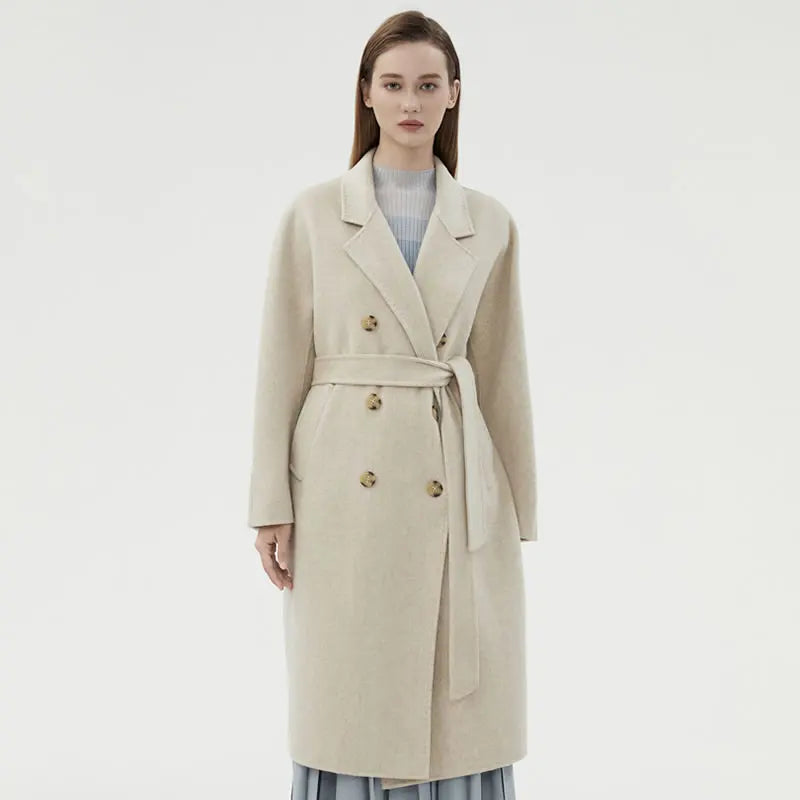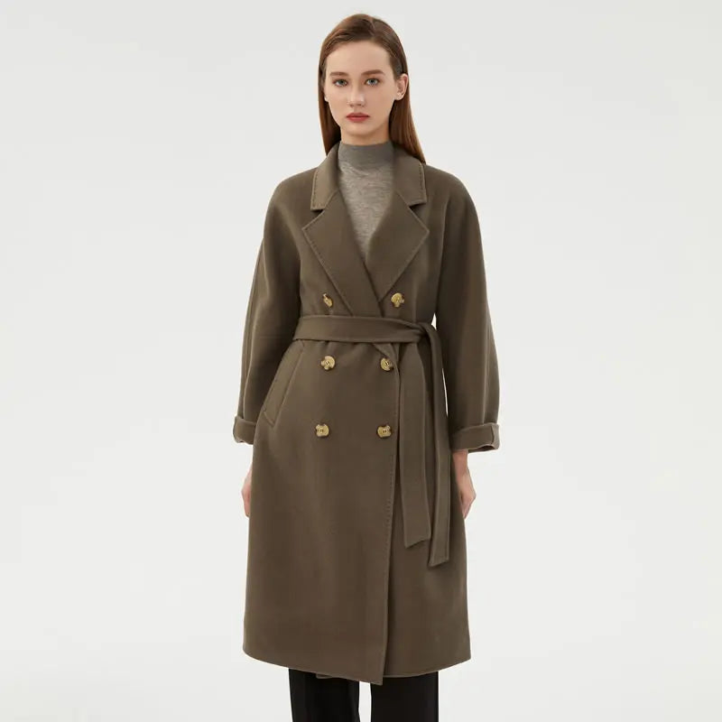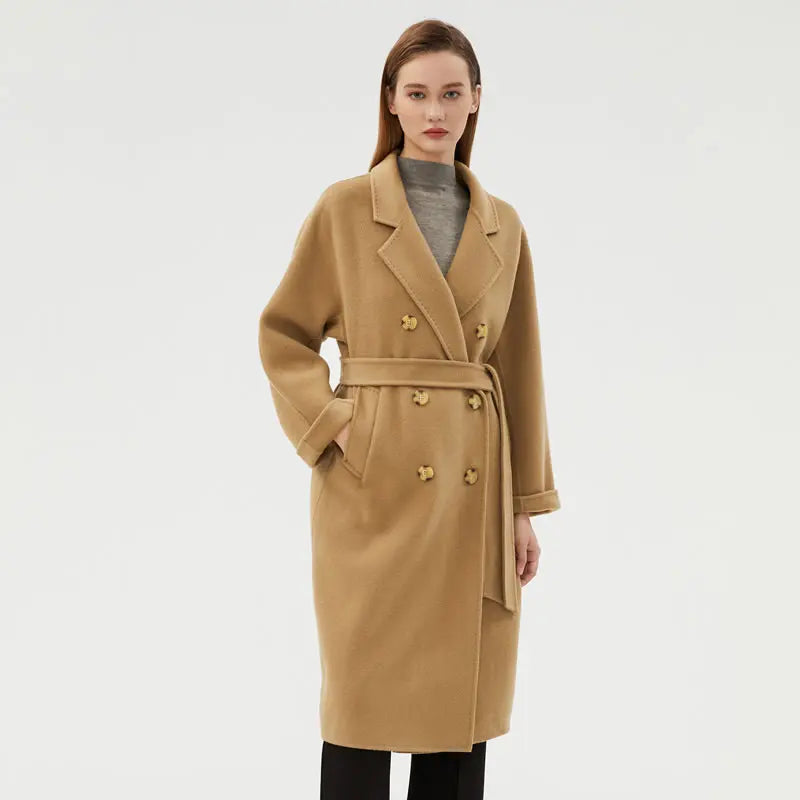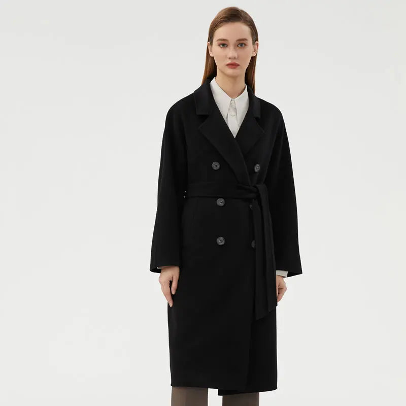 Ladies' 100% cashmere thick double-sided extended coat, classic, versatile and fashionable for business and leisure