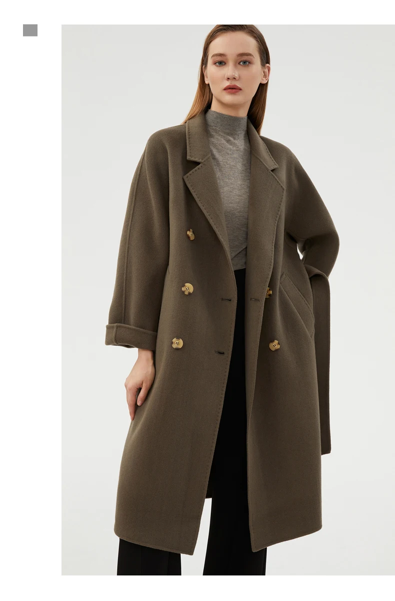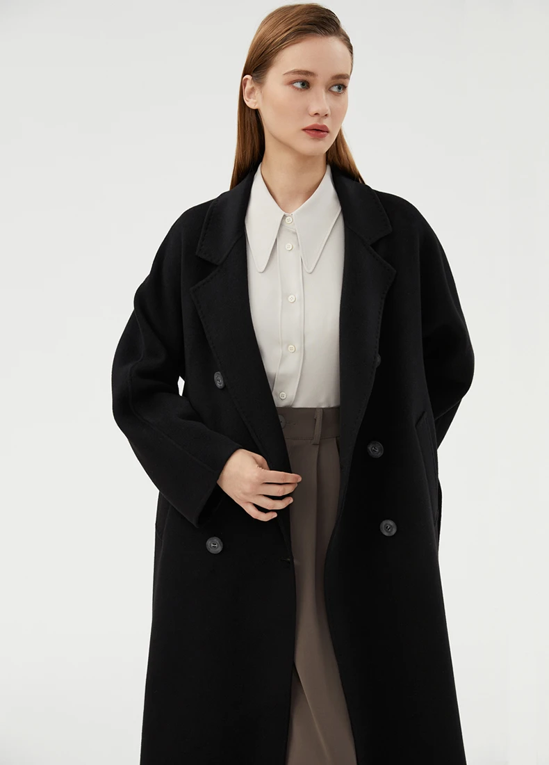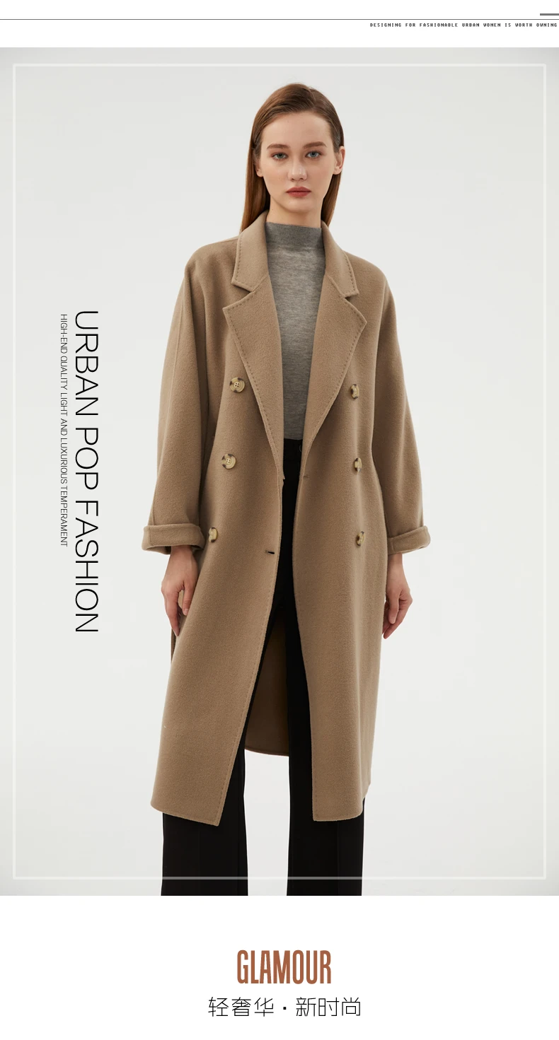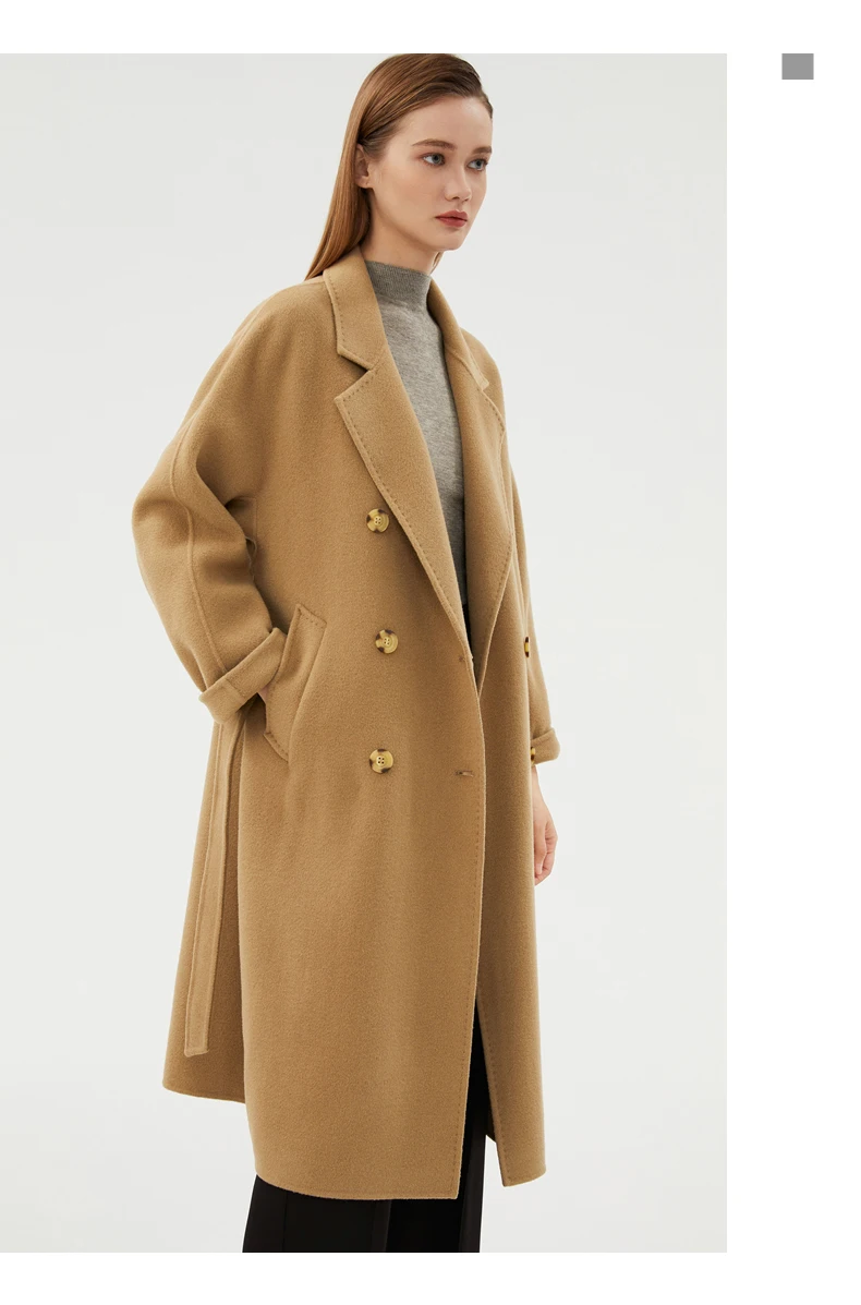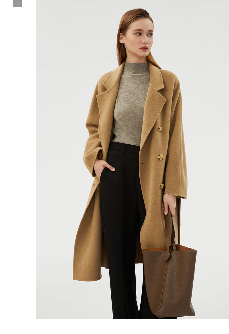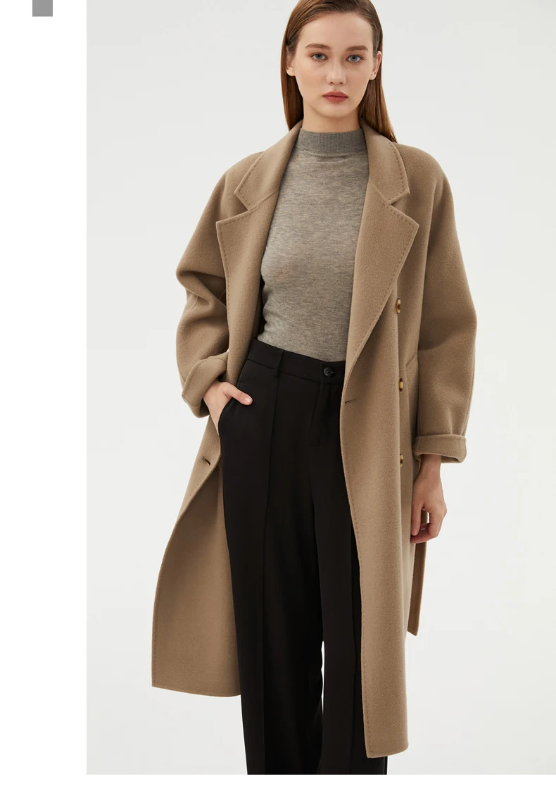 Ladies' 100% cashmere thick double-sided extended coat, classic, versatile and fashionable for business and leisure