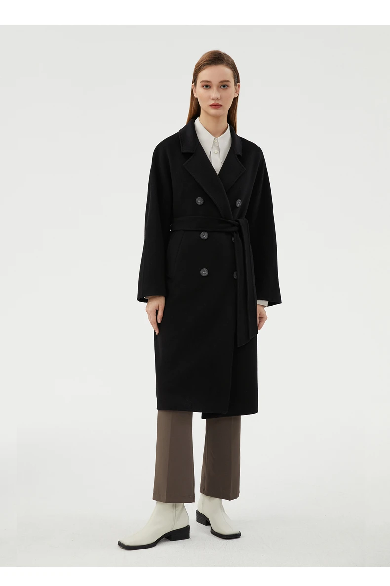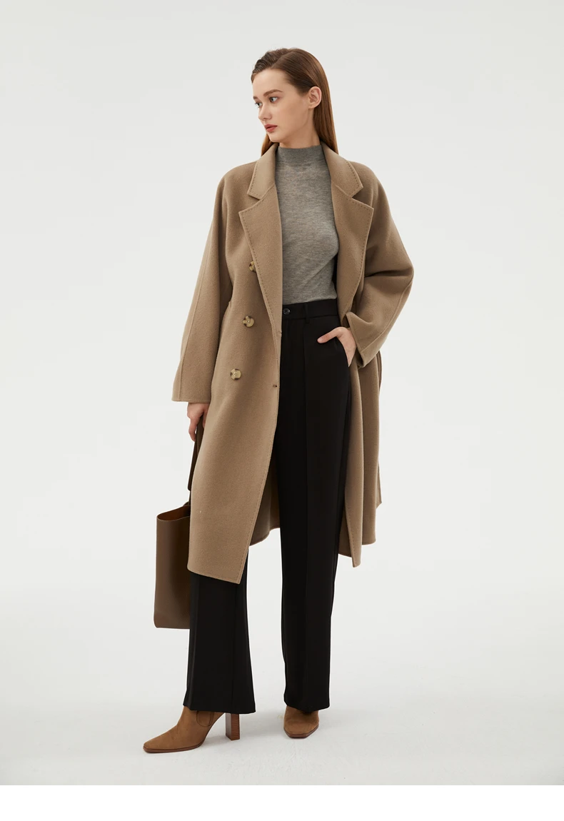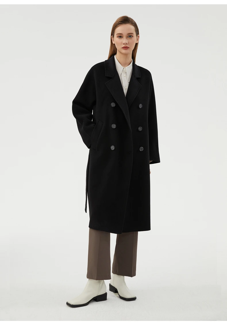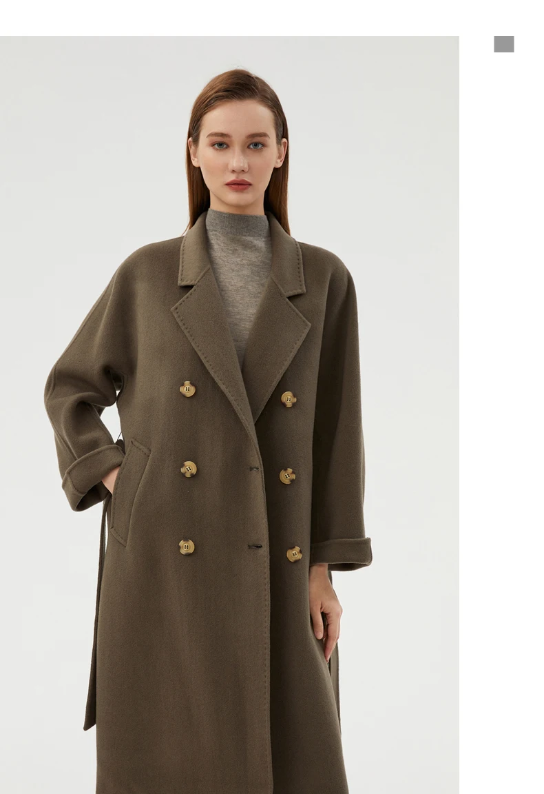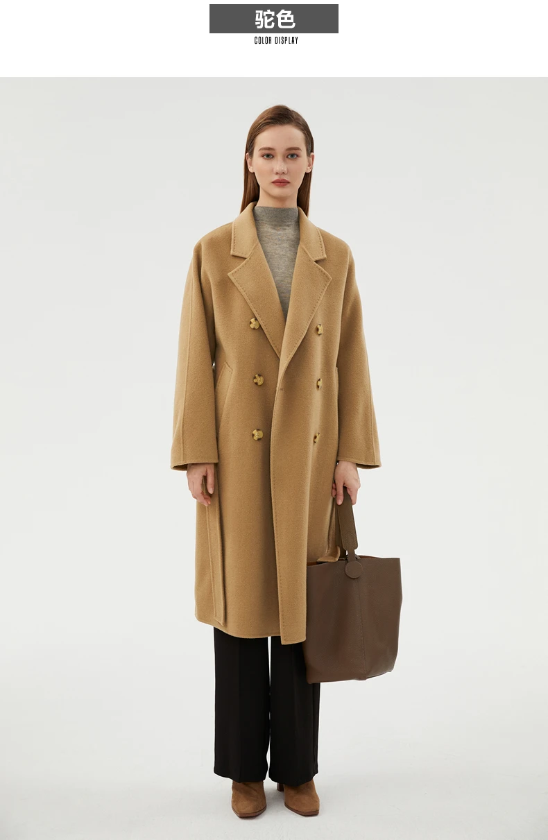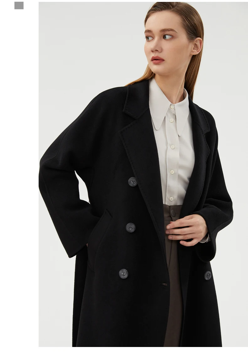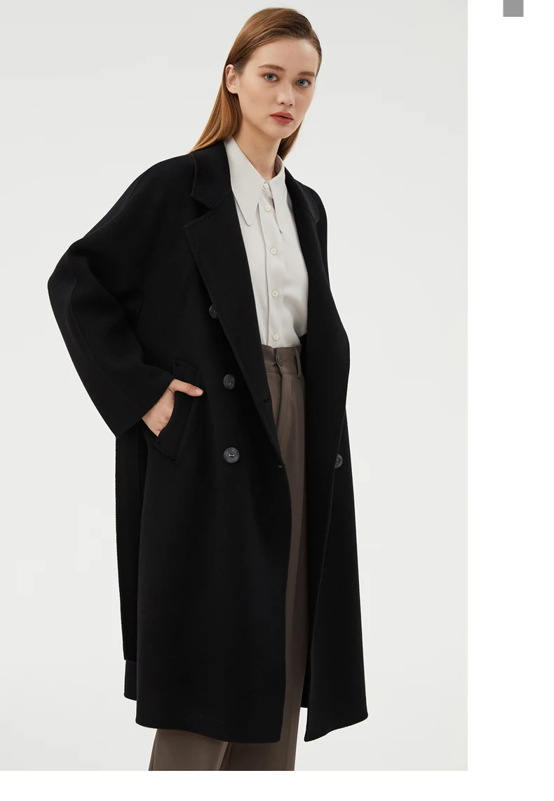 Ladies' 100% cashmere thick double-sided extended coat, classic, versatile and fashionable for business and leisure