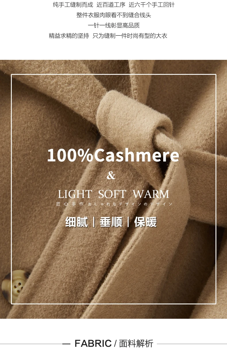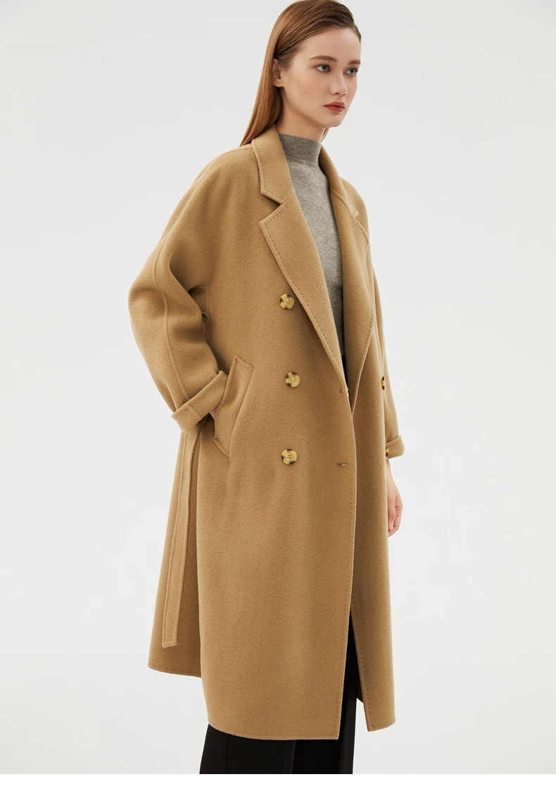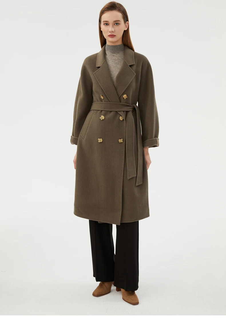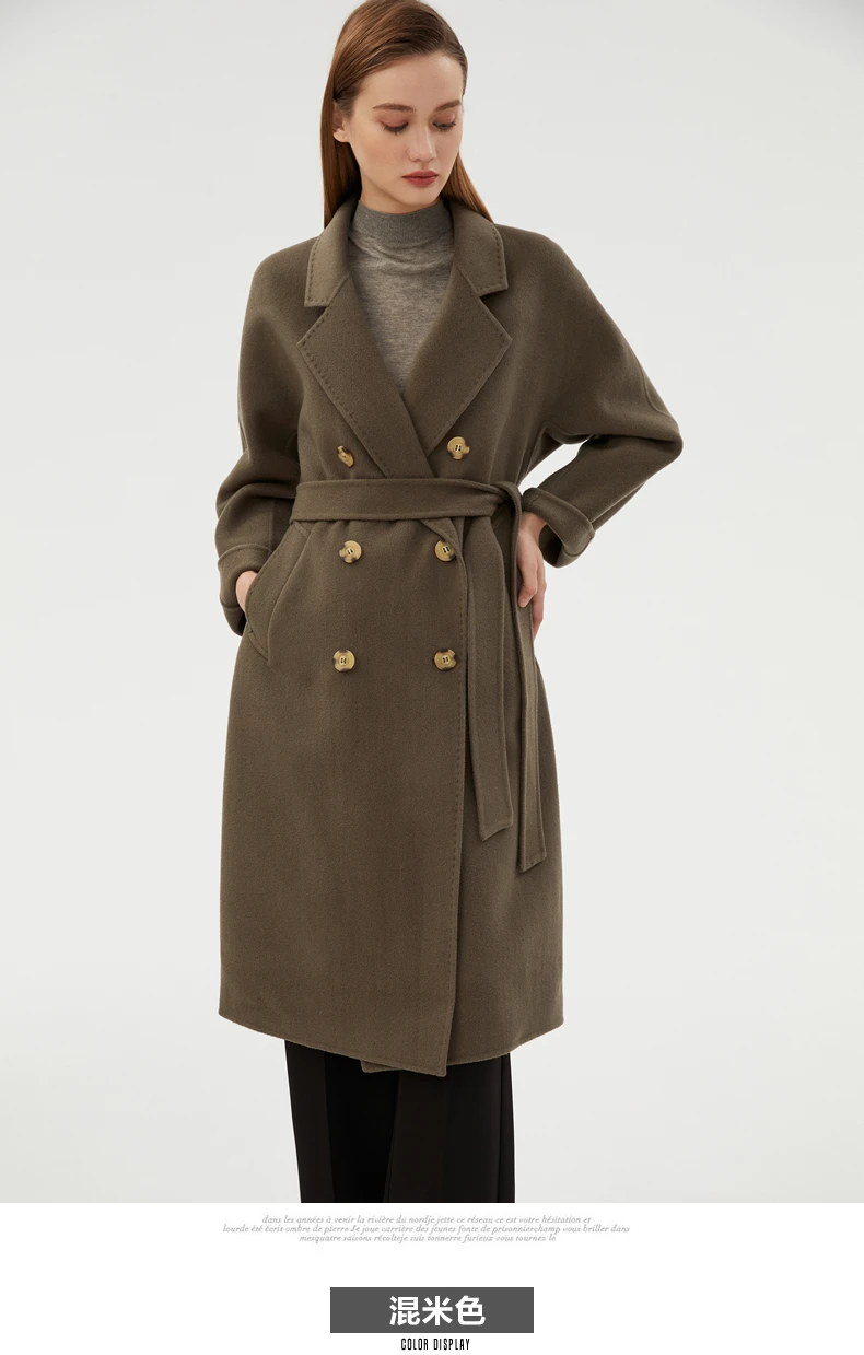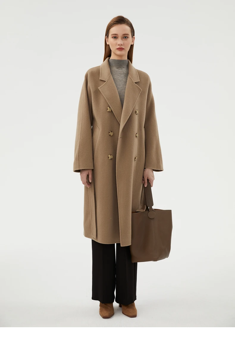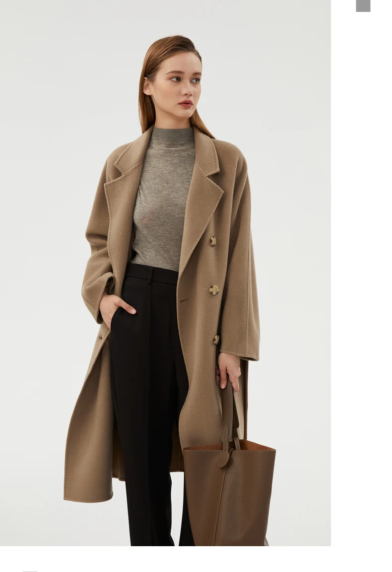 Ladies' 100% cashmere thick double-sided extended coat, classic, versatile and fashionable for business and leisure