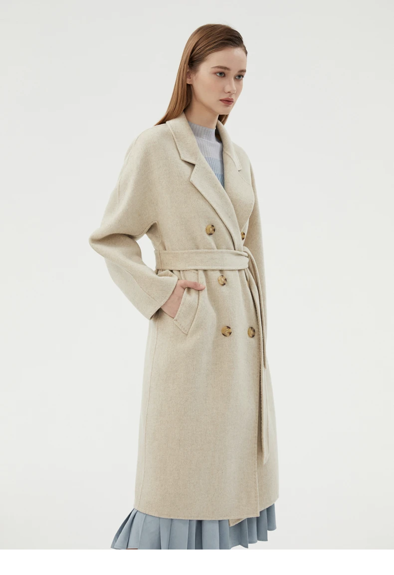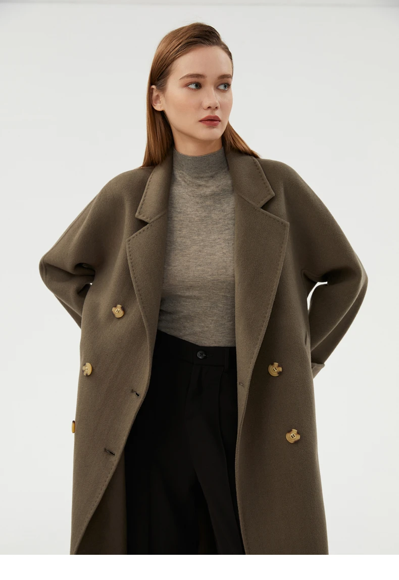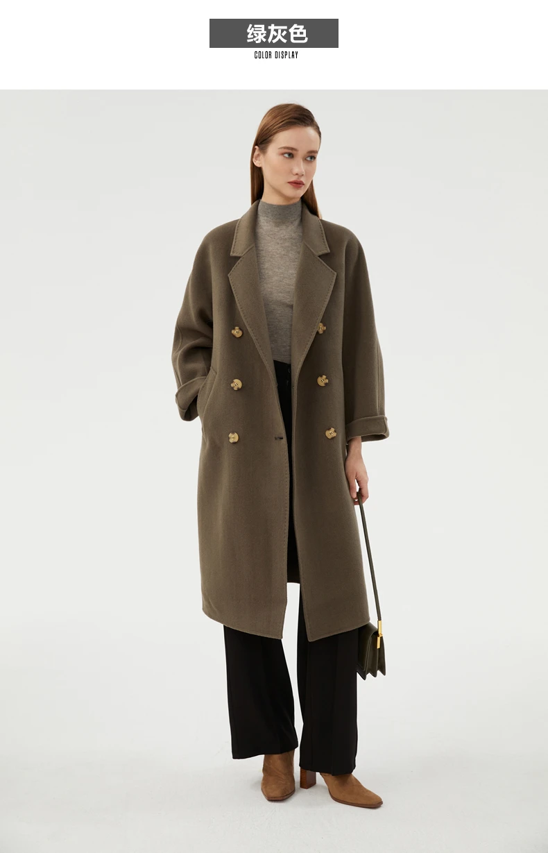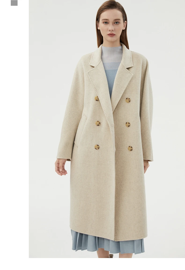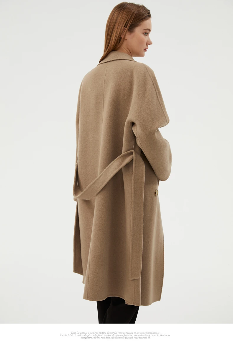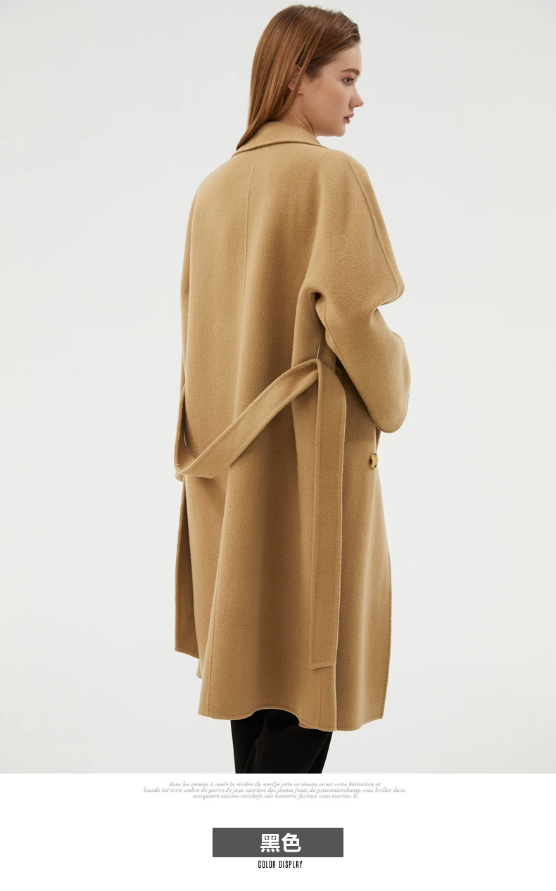 Ladies' 100% cashmere thick double-sided extended coat, classic, versatile and fashionable for business and leisure
