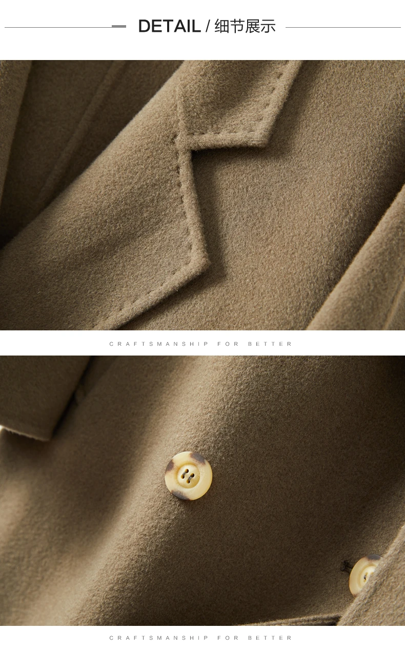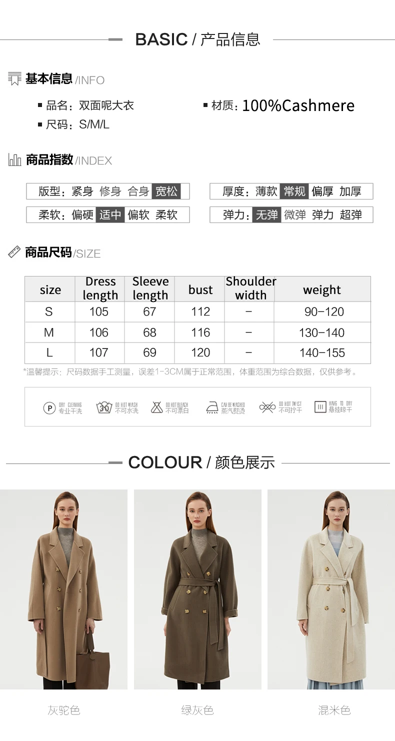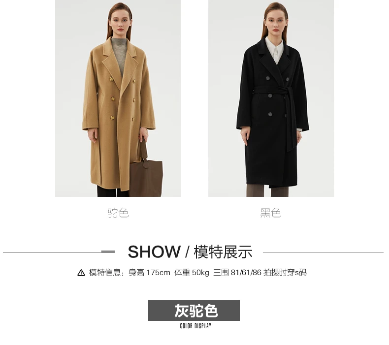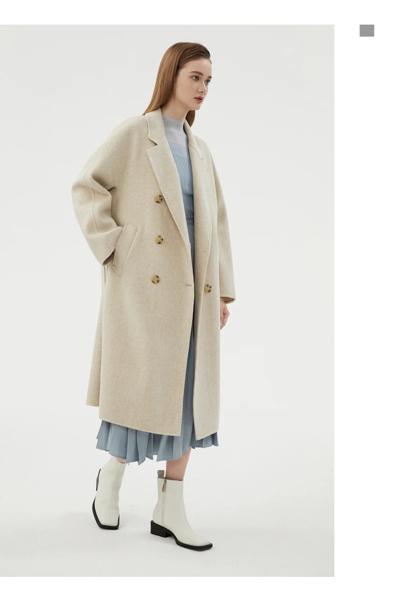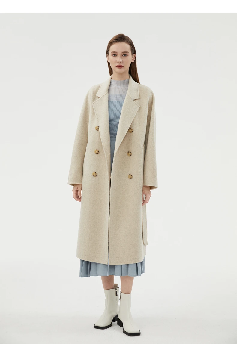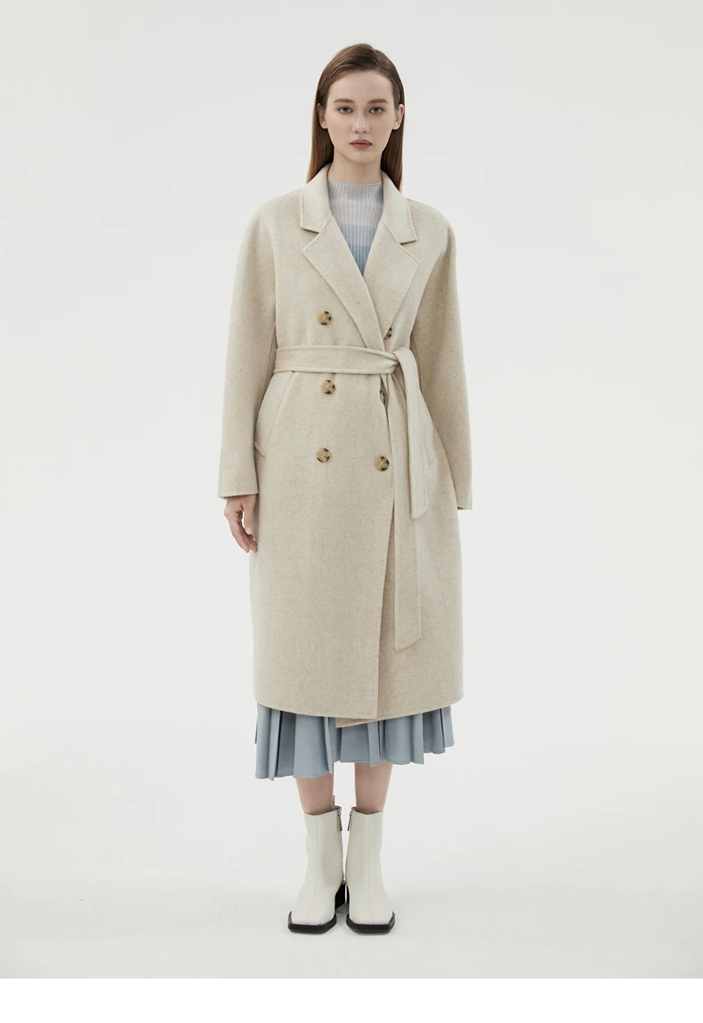 Ladies' 100% cashmere thick double-sided extended coat, classic, versatile and fashionable for business and leisure