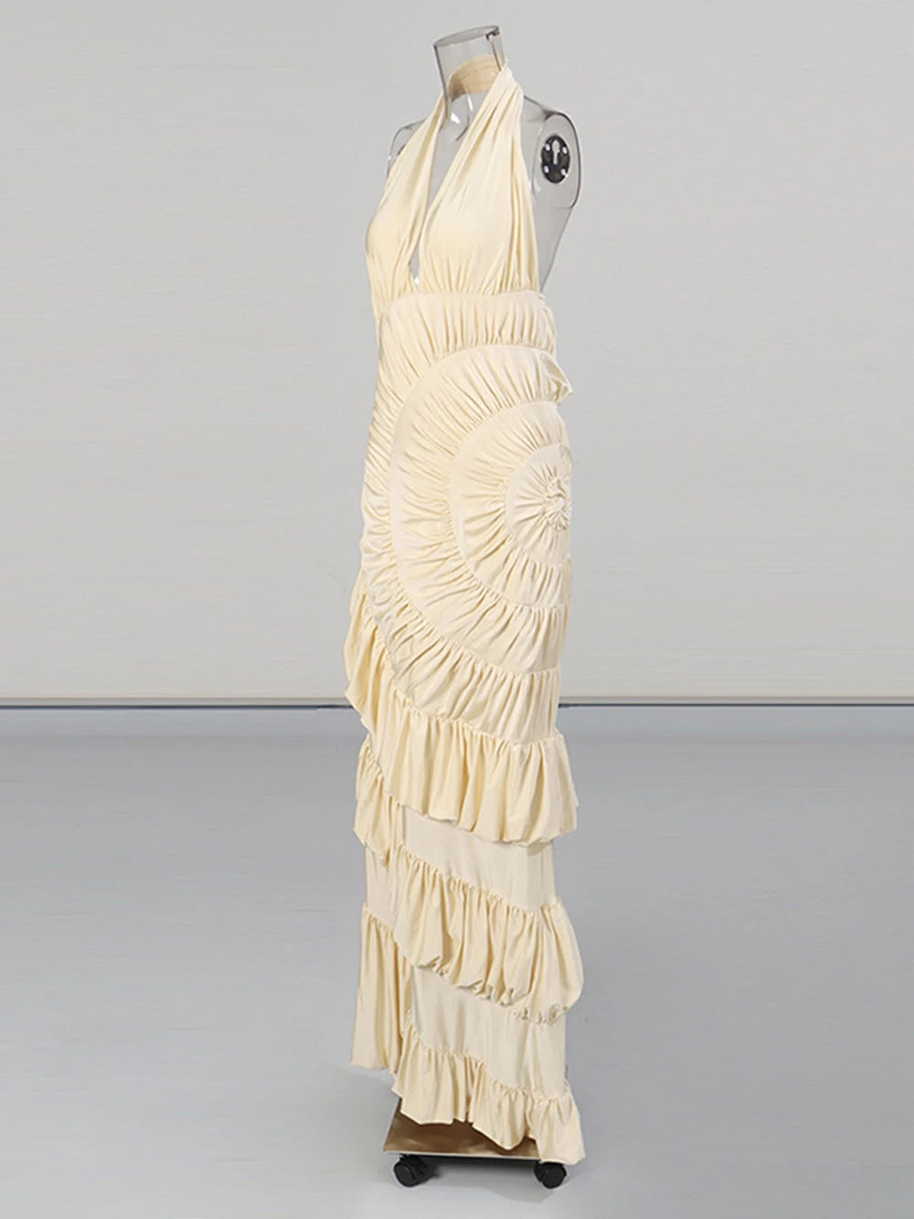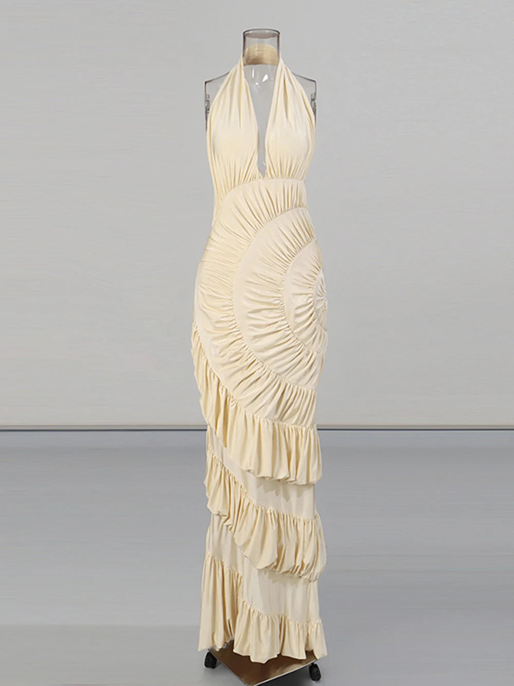 Modphy Elegant Folds Halter Dress Women Solid Off Shoulder Sleeveless Backless Slim Maxi Dresses 2025 New Party Robes Lady